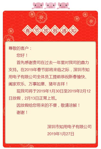深圳知用电子春节放假通知